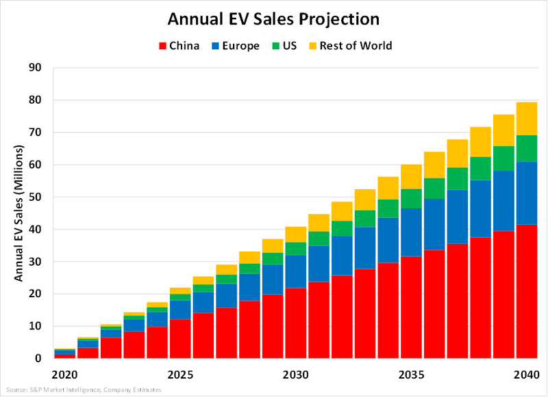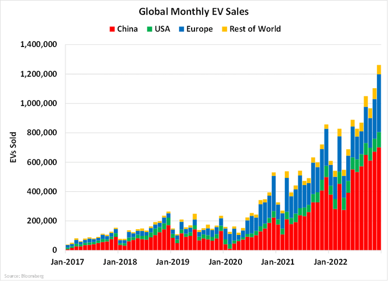 Much of the EV growth over the past few years has come from China. 60 percent of 2022 EV sales were in China.