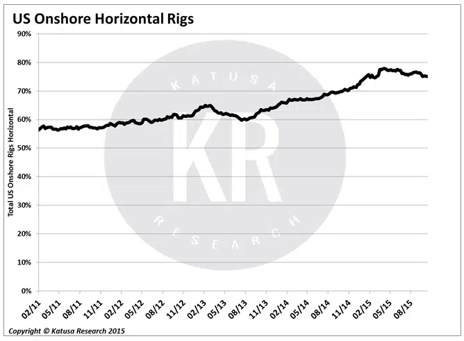 In 2004, the horizontal rig count was a mere 108 and comprised only 10% of total rigs used by onshore US drillers. That number increased to 966 in early 2011, capturing 55% of the US onshore market. Although the horizontal rig count is now down to 591, the unconventional—or, as I call them, “the new normal”—rigs make up 77% of total rigs currently in use in the US.