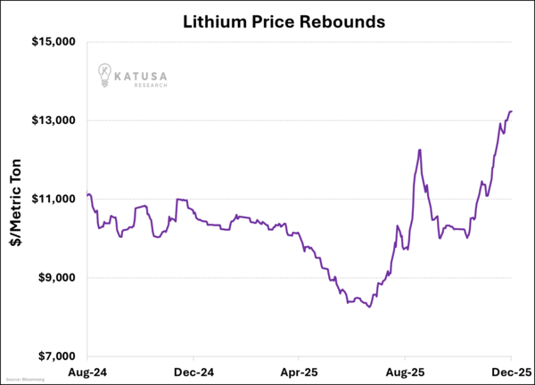 Lithium spodumene gained 57% from its 2025 low of $8,259 per metric ton in June to $13,002 by November end.