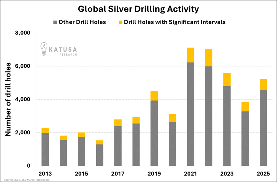 In 2025, silver drilling increased about 36% from 2024, reflecting renewed exploration interest.