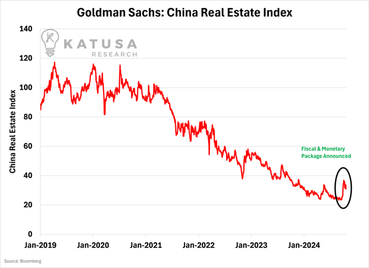 The “knee jerk reaction” to the policy announcements has been positive as shown below by the Goldman Sachs China Real Estate Index.
