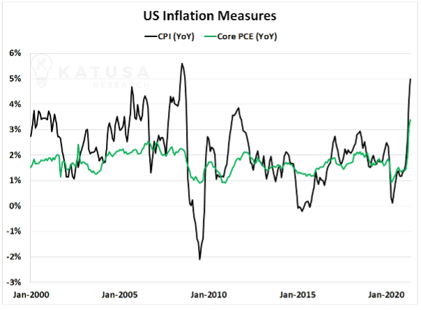 By either measure, inflation is evident as shown in the dramatic spike over the past 2 months…
