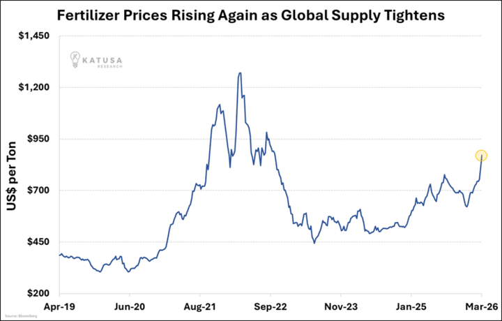 We profiled CF Industries and several other fertilizer plays in Katusa’s Resource Opportunities in late 2025, well before the Hormuz crisis made headlines.