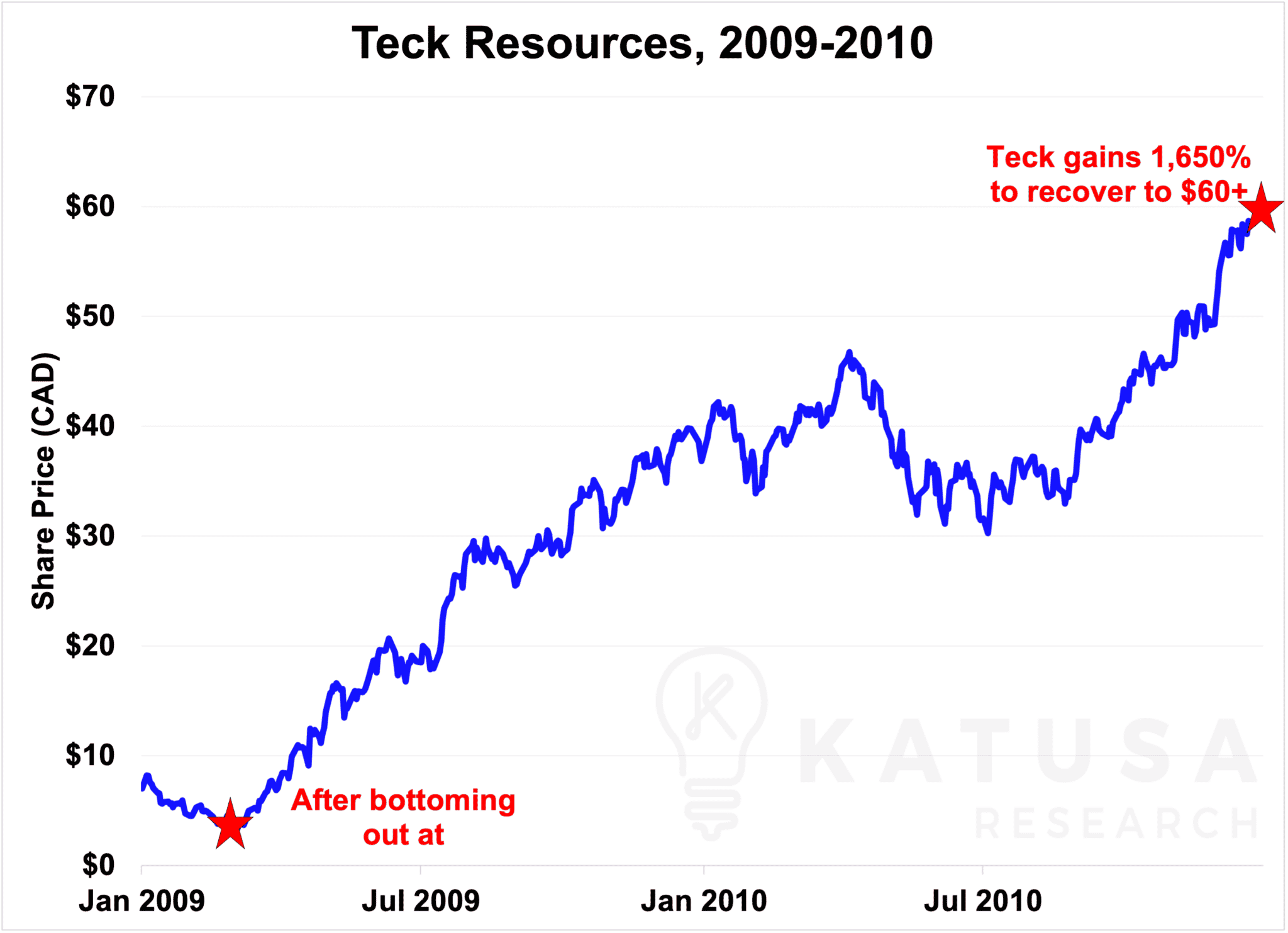 For example, in the depths of the Global Financial Crisis, Teck Resources, Canada’s largest diversified miner traded below $4 per share.