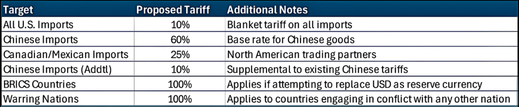 Trump’s fondness for it has only grown deeper since the election. In a series of tweets over the past month, he’s threatened a half dozen historic tariffs, including: