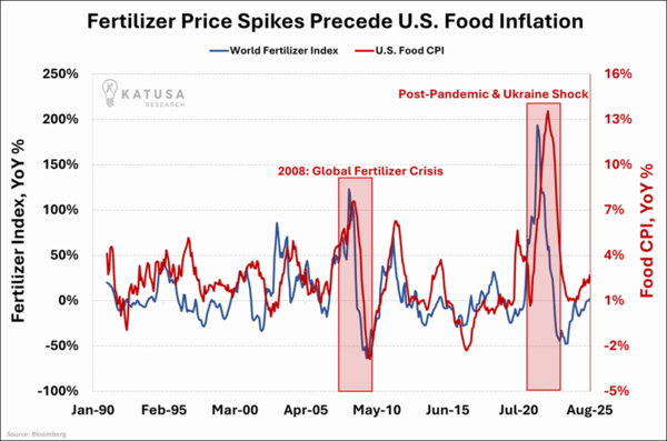 After COVID and Ukraine? Same story. Fertilizer hit records. Food CPI went double-digits.