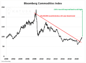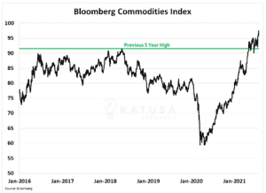 It’s not just gold that is doing well these days. The commodities boom is at full throttle, recently taking out the old 5 years high in the Bloomberg Commodities Index.