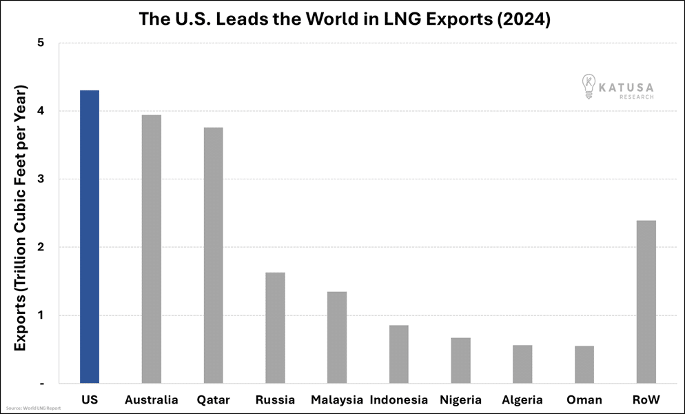 The United States ships roughly 4.31 trillion cubic feet (TCF) of LNG every year, which is 2.5 times the Russian LNG exports.